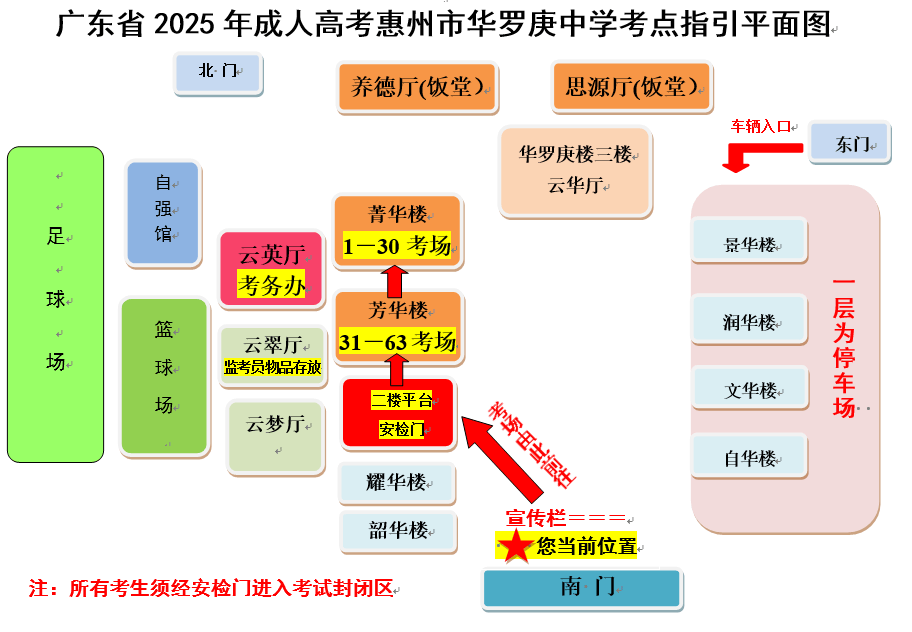 2025年全国成人高校招生统一考试将于10月18日至19日进行,惠州市华罗庚中学考点温馨提醒如下: