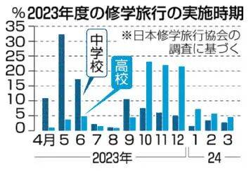 日本是3月份学年结束,4月份开始进入新学年,所以修学旅行一般在5~6月或者9~10月份,一个不冷也不热的时间段。小学生的时间比较短有的学校甚至当天回,初中一般3天2夜,高中生的话4天3夜的也有。