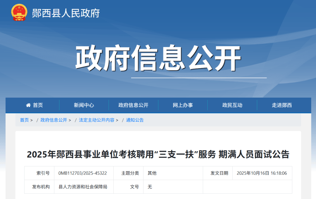 《2025年郧西县事业单位考核聘用“三支一扶”服务期满人员面试公告》