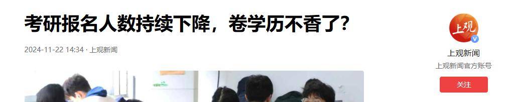考研人数的持续下降,这背后其实是越来越多的人开始理性计算:读研到底能给自己带来什么,如果只是为了逃避就业,或者跟风考研,那最后的结果可能比不读研还惨。