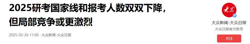 据统计,2025年全国硕士研究生报名人数只有388万,比上一年减少了50万人,相比2023年减少86万人,创20年来最大跌幅。