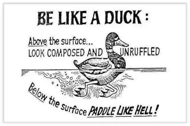 有人将这种现象称为“斯坦福鸭子综合征”:水面上平静自若,水下却拼命蹬腿。所有人都装作毫不费力,只有你一个人在咬牙坚持。