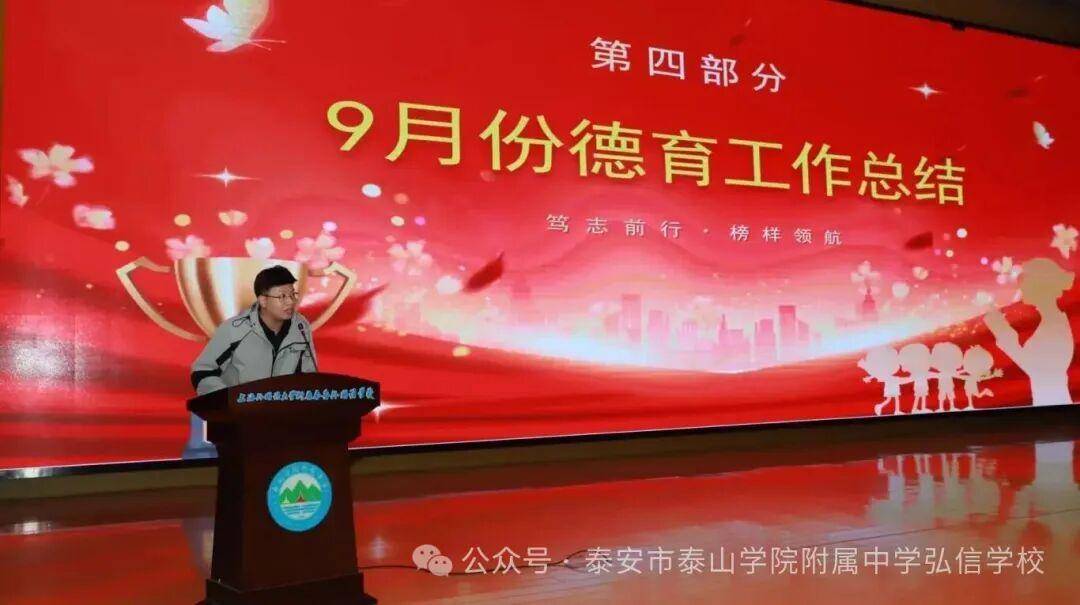 鲁网10月14日讯 金秋十月,叠翠流金,在这满载希望与收获的季节,泰安市泰山学院附属中学弘信学校举行“少年应有凌云志,聚力扬帆铸辉煌”--初四年级阶段总结指导会,复盘过往成长、表扬优秀典型、锚定奋斗方向,为初四学子吹响冲刺的“冲锋号”!