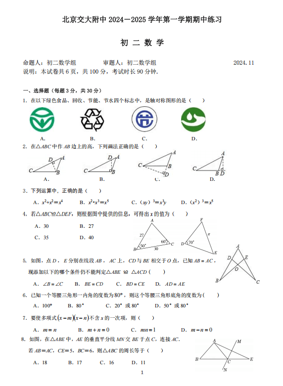 月考没发挥好的别慌,现在领期中真题提前练,还能把漏洞补回来!