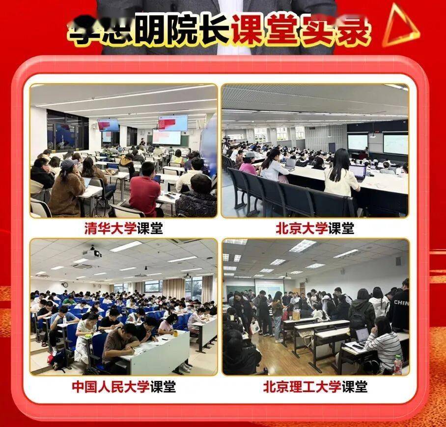 广告图顶部是“申论能力提升院长班”的红白大字,左侧写着“限时优惠2980元”,右侧配了4张照片,是授课老师在清华大学、北京大学、中国人民大学和北京理工大学讲课时,台下坐满学生的场景。
