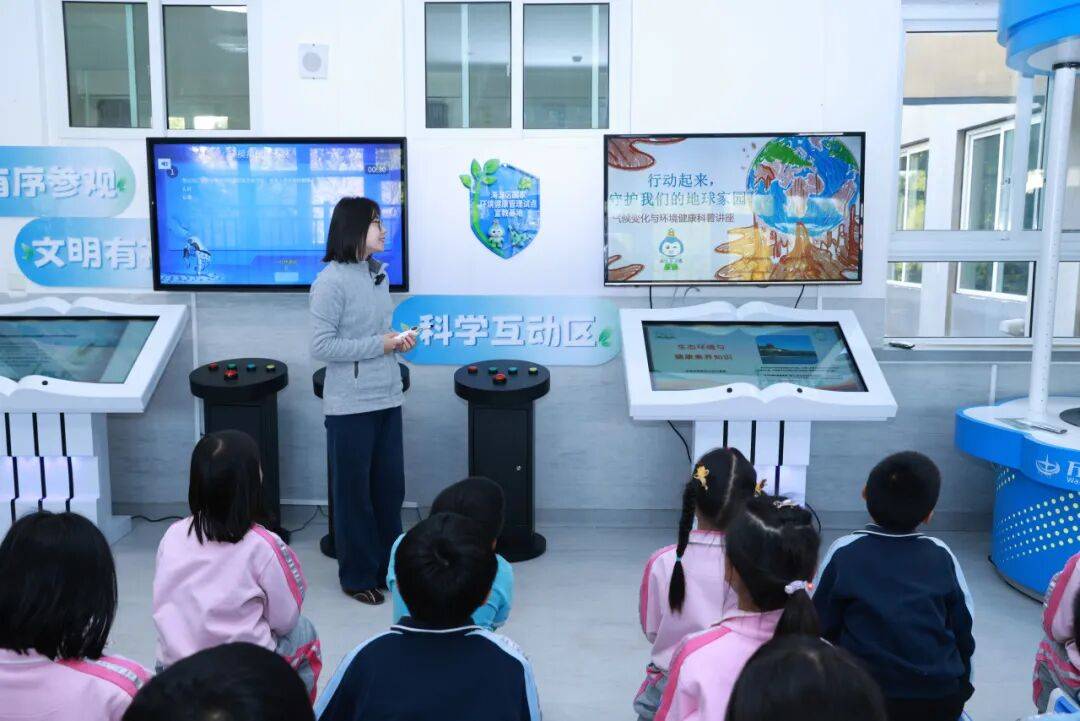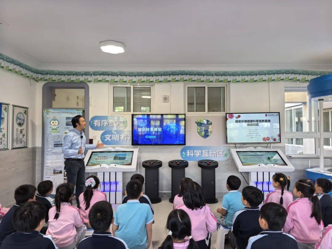 本次基地建设聚焦“科技赋能科普”,打破传统单向宣传模式,以互动体验和专业讲解为双引擎,配备1台环境健康知识抢答设备、2台环境健康素养翻书设备及2块环境健康宣教动画展板,并设计了涵盖环境健康素养宣教手册、《秒懂生态环境与健康》科普动画、“碳小海”主题定制文具等宣传材料。让青少年能够亲手操作,在趣味互动中探索并直观学习环境健康知识,推动实现“在玩中学、在学中悟”的科普新体验。