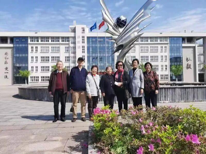2021年4月10日,章国蓓老师、盛季兰老师、丁秀兰老师、王兆红老师、章秀英老师、周绍荣老师和管老师等在枞中大门外合影。