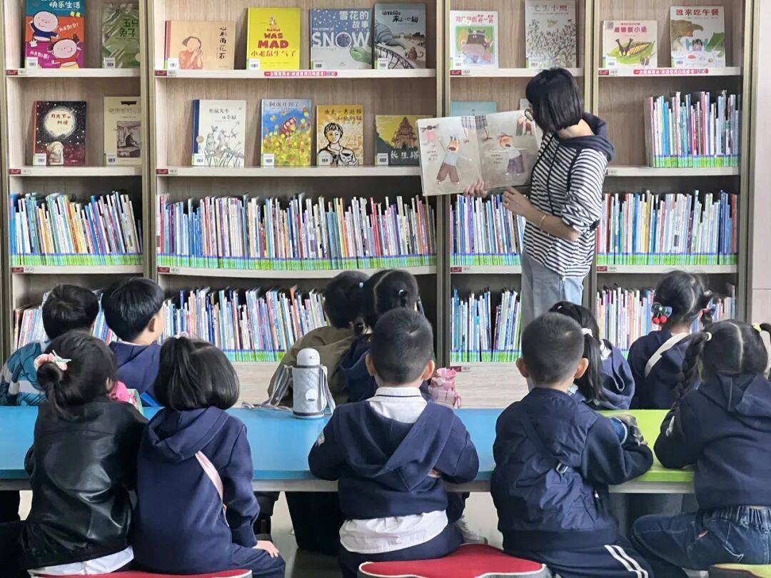 最后在绘本馆,没有整齐的“排排坐”,孩子们或地垫或靠书架,听老师讲绘本。讲到主角遇困难,有人攥紧小拳头;讲到问题解决,又有人拍手叫好。仰着小脸目不转睛看着老师讲述绘本故事。