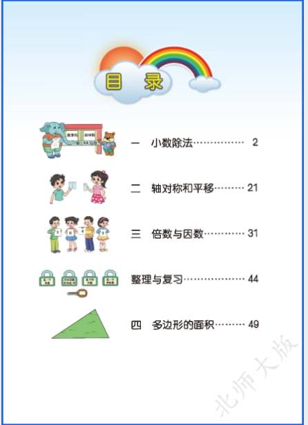 北师大版五年级数学(上册) 新教材电子课本在线阅读(此为截图版,获取是高清版)