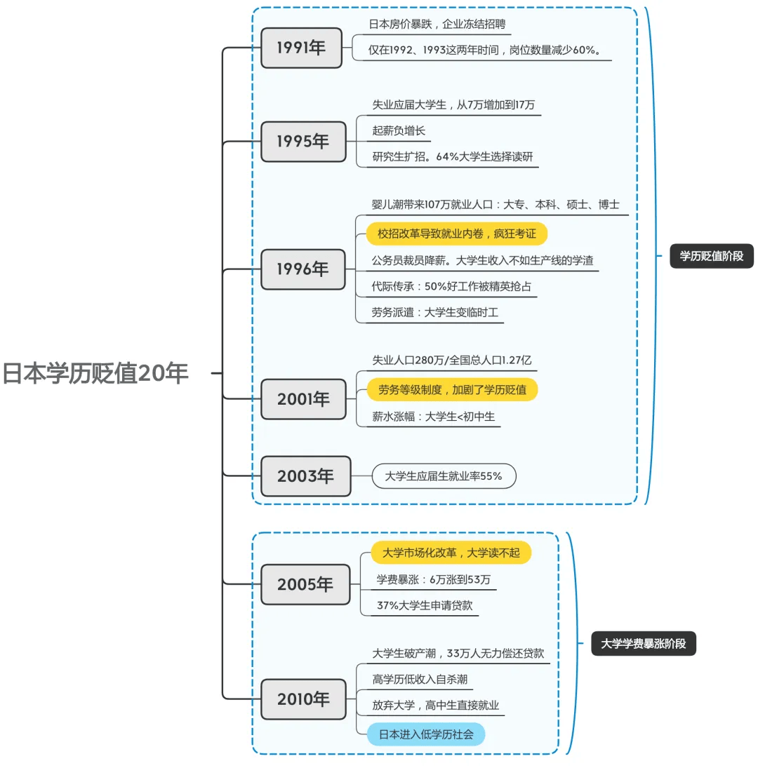 以前总听人说,现在国内学历贬值跟10年前的日本很像:经济下行,大学生找不到工作,为了就业降薪内卷,高学历降维打击,大学毕业过得甚至不如高中生。