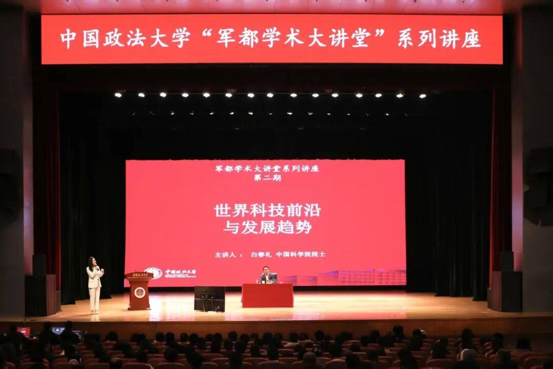 10月17日下午,军都学术大讲堂第二讲在昌平校区礼堂如期举行。本期讲堂邀请了我国著名化学家、纳米科技专家、中国科学院院士白春礼担任主讲嘉宾,以“世界科技前沿发展态势”为主题,为中国政法大学师生呈现了一场高水平的学术盛宴。北京市委常委、教育工委书记于英杰,学校领导姜泽廷、胡志钢、王立艳、黄瑞宇、卢春龙、王洪松等出席。全校中层干部、青年教师代表、辅导员1600余人分别在两校区同步聆听。大讲堂由姜泽廷主持。