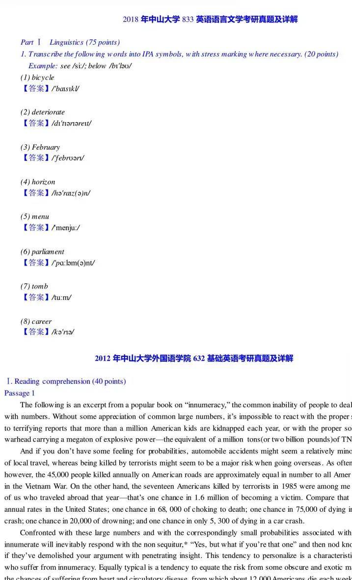 2003-2018年中大620基础英语考研真题答案