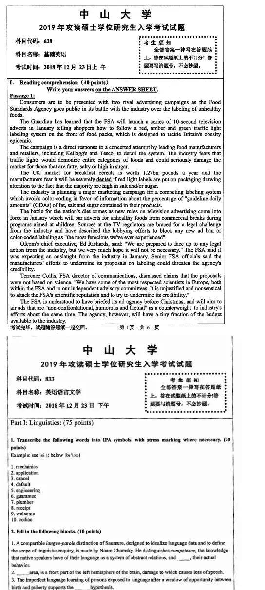 2003-2019、2021年中大827英语语言文学考研真题试卷