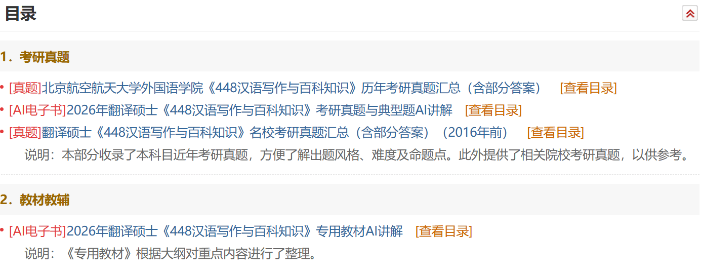 • [AI电子书]2026年翻译硕士《448汉语写作与百科知识》专用教材AI讲解[查看目录]