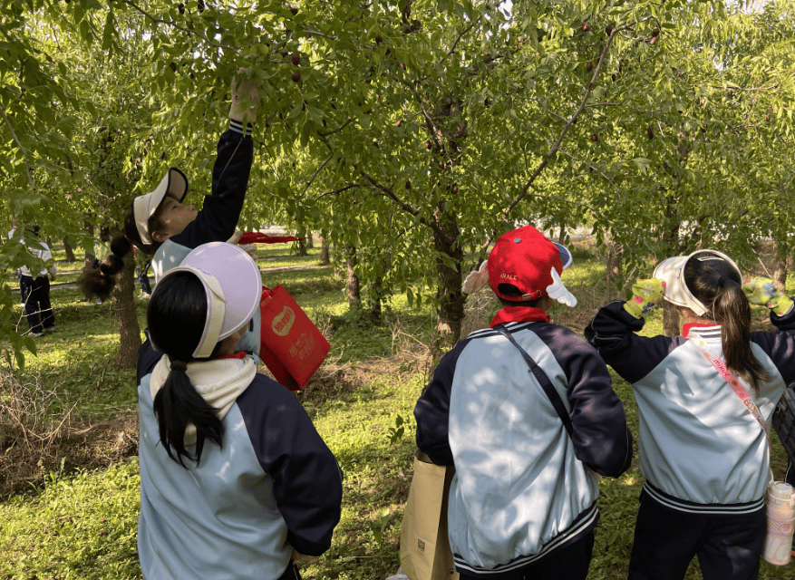 10月15日,四年级学生奔赴灵武长枣示范园区,开启“行走的思政课”劳动实践。枣园农技员现场教学,从长枣品种特色、生长周期,到“观颜色、辨手感选枣”“轻捏枣蒂采摘防损伤”的技巧,一一细致讲解。随后,同学们以小组为单位分工协作,有的踮脚够高处红果,有的蹲下捡拾掉落枣子,在欢声笑语中体会“汗滴禾下土”的辛劳与“硕果满篮”的喜悦。“既懂了农民伯伯的辛苦,又学会了团结协作,还知道不能浪费粮食。”学生宋思珞的感慨道出大家的收获;家长王华也说道:“此次活动让孩子懂了长枣的珍贵,尝了劳动的快乐。”