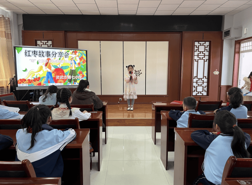 10月13日,“灵州秋韵描新卷 枣梦华章映丰年——‘枣’知有你”故事分享会率先拉开帷幕。“小小故事王”们轮番登场,用生动语言勾勒红枣世界:《灵武长枣 一颗璀璨的塞上明珠》铺开长枣千年发展脉络,让同学们读懂“塞上珍果”背后的家乡记忆;《秦渠枣韵与王母红》结合地域特色与民间传说,刷新对长枣价值的认知;《囫囵吞枣》的演绎更是妙趣横生,让经典成语故事焕发新活力。这场分享会不仅为学生搭建了语言表达平台,更让灵武长枣的历史底蕴与民俗魅力在校园中鲜活流淌。