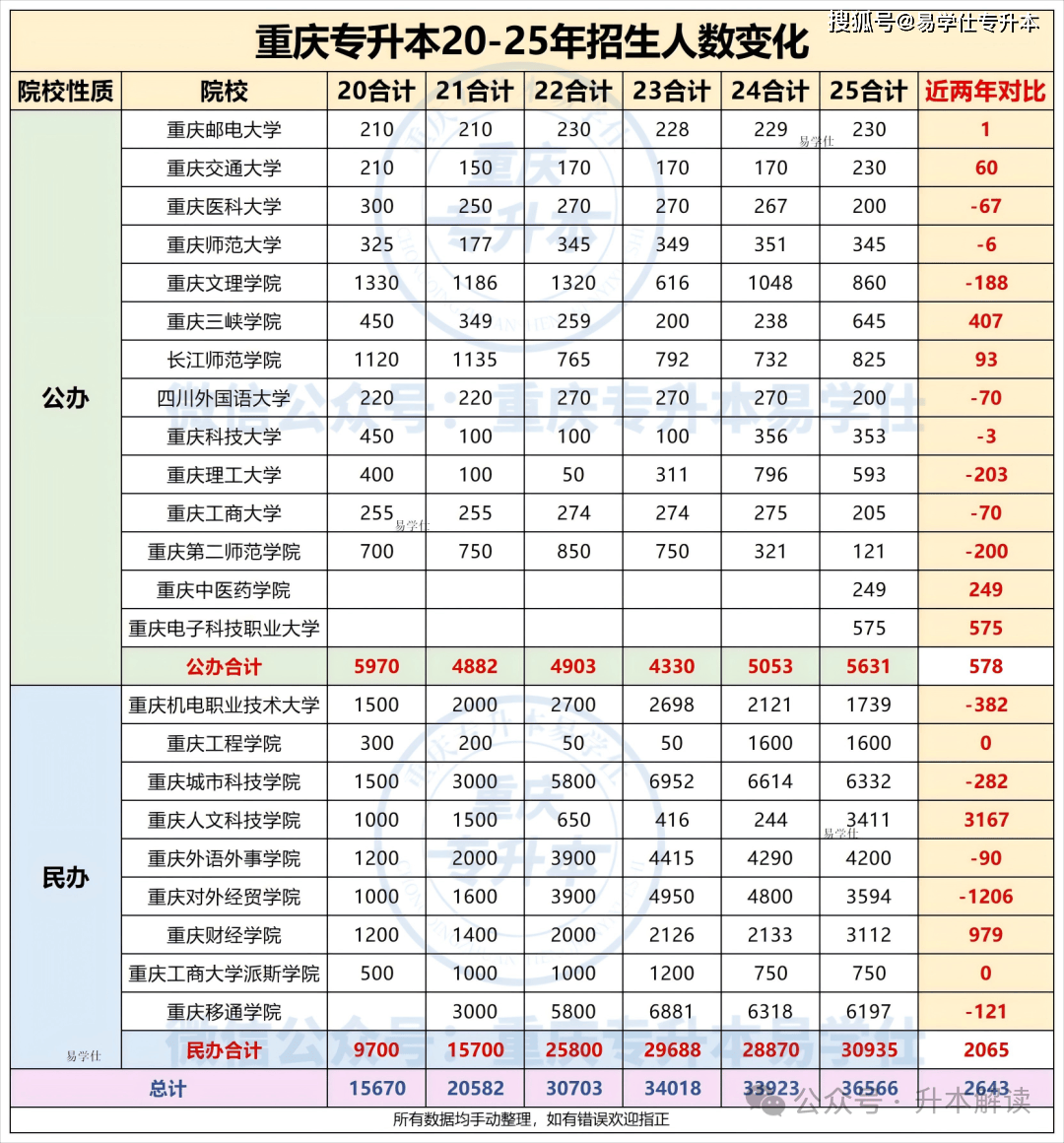 其实单看专升本的公办院校数量,还是挺多的。比如重庆专升本总招生院校23所,其中公办本科就有14所。