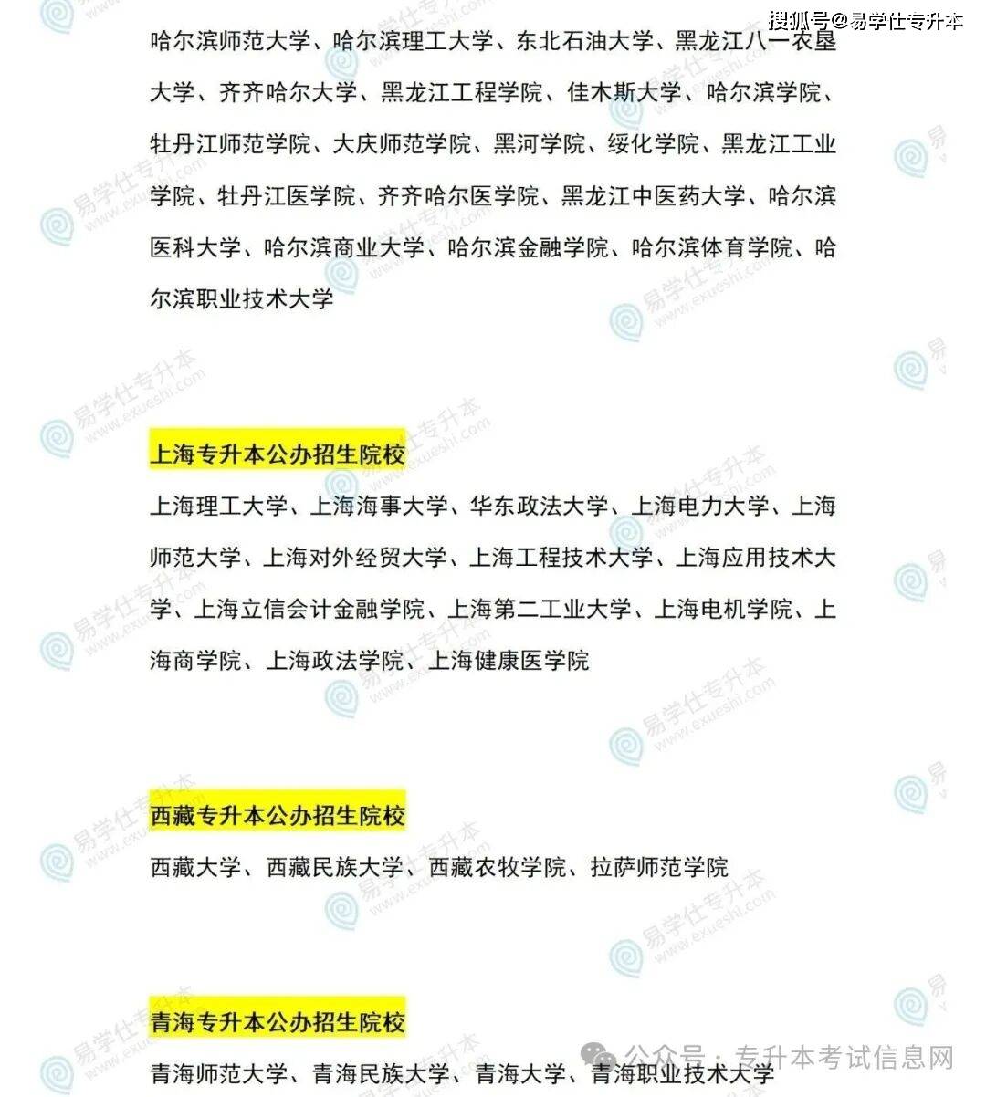 今天我就再把各省份专升本的公办本科院校汇总整理一遍,大家可以参考。