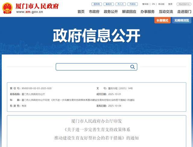 为进一步完善生育支持政策体系,建设生育友好型社会,根据《国务院办公厅印发〈关于加快完善生育支持政策体系推动建设生育友好型社会的若干措施〉的通知》(国办发〔2024〕48号)以及《福建省人民政府办公厅印发〈关于推动建设生育友好型社会的若干措施〉的通知》(闽政办〔2025〕22号)等文件精神,结合本市实际,提出以下措施。