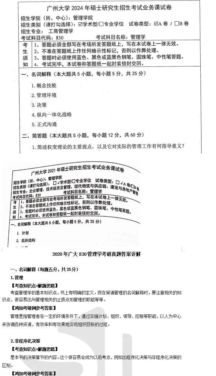 2026广大工商管理学考研资料【2012-2025年广州大学830管理学考研真题试卷与答案+导图笔记课后答案PPT】