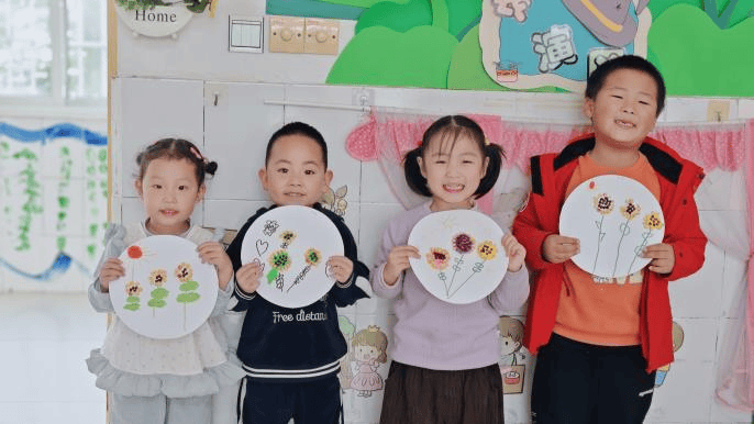 手工创作环节,孩子们以秋收粮食为原材料变废为宝:用玉米皮编织小帽子、小扫帚,用花生壳粘贴成“冒雨收粮的农民伯伯”,用红豆、绿豆拼贴“丰收的田野”,在动手实践中深化对粮食的珍惜之情。