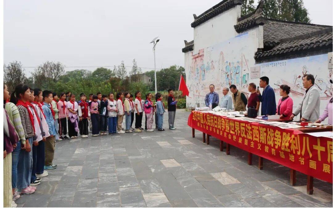 活动尾声,研究会将本次展览的所有书画作品无偿赠予中心小学的同学们。陈瑶湖镇关工委凌长龙主任表示,这一份份特殊的礼物,不仅承载着老艺术家们对青少年的关爱,更寄托着对下一代“勿忘国耻、吾辈自强”的殷切期望与深情勉励。