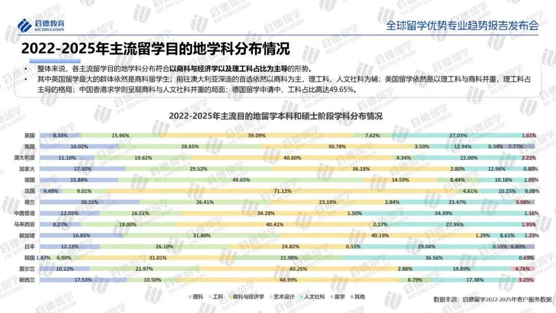 为系统把握这一全球教育变革趋势,启德教育于2025年10月18日发布《全球留学优势专业趋势报告》。报告基于近四年超过40万条启德留学申请与录取数据,结合多方权威官方信息,从学科专业视角进行多维度深度分析。内容涵盖各热门专业的申请录取趋势,并深入解析英国、美国、加拿大、澳大利亚、德国、中国香港等主要留学目的地的五大学科、30个热门及新兴专业方向,旨在为留学申请者提供一份立体、全面、科学的专业选择指南。