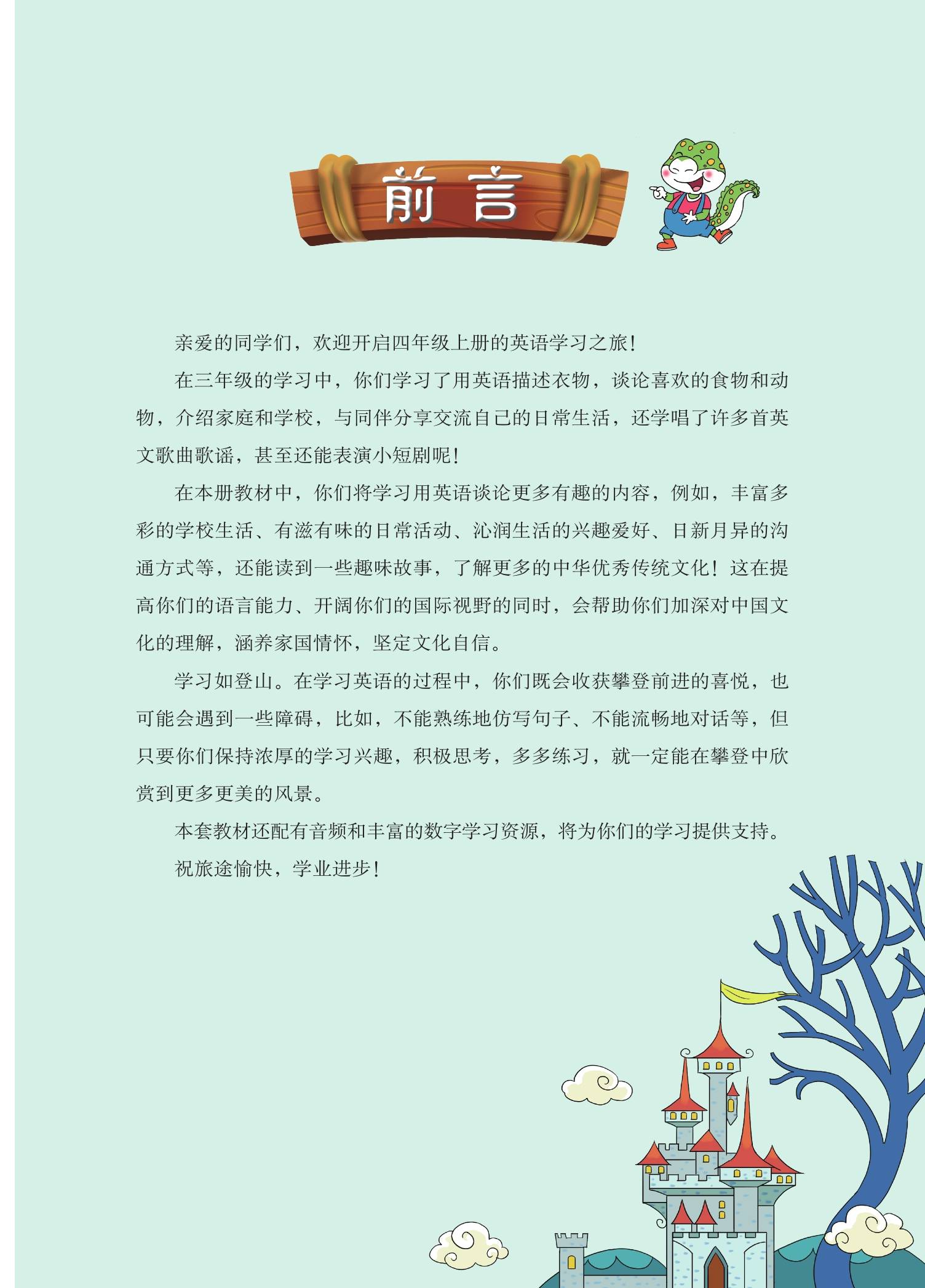 本套2024版鲁科版(五四制)小学英语四年级上册电子课本是由国家教材委员会专家委员会2024年审核通过的教材。