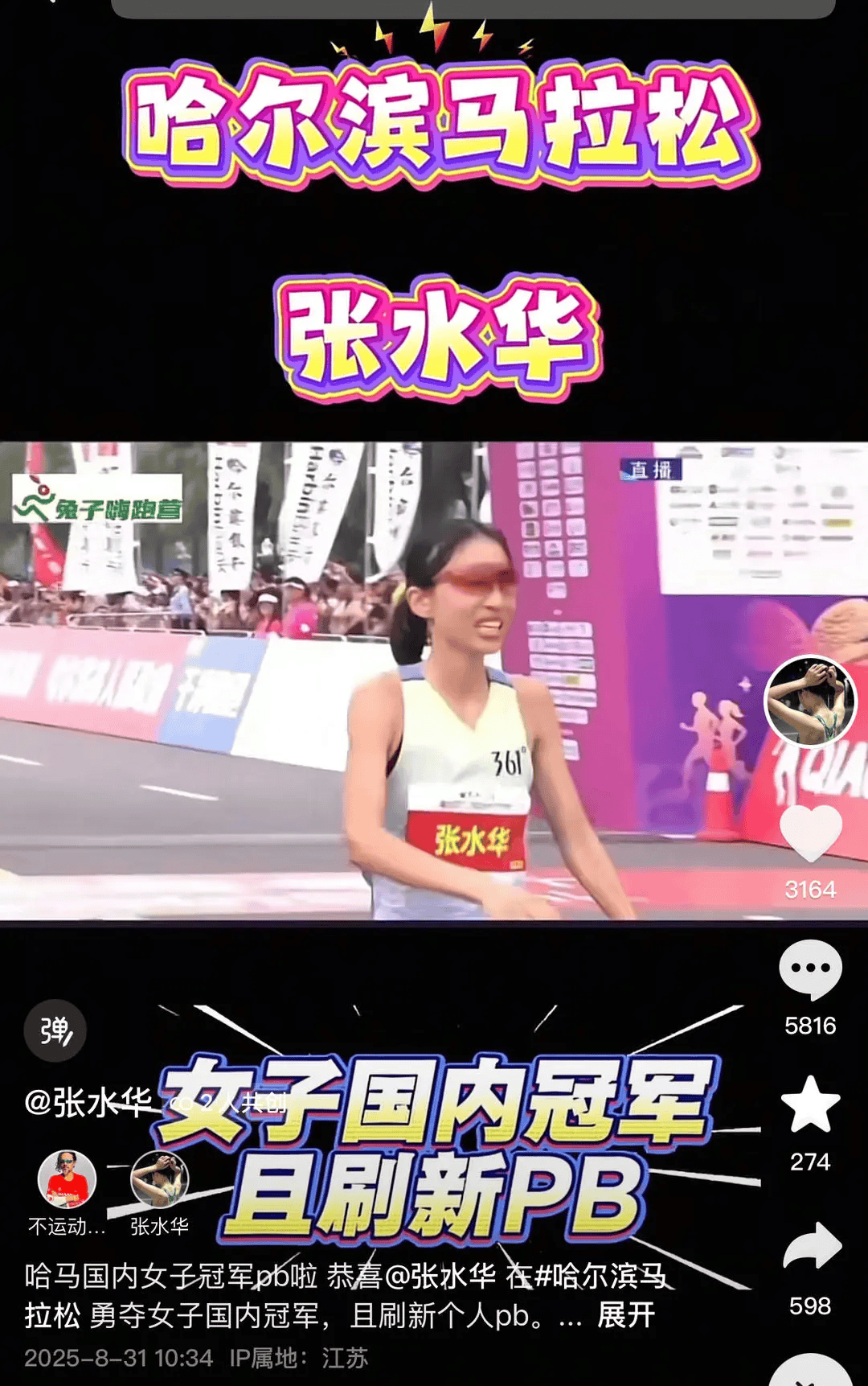 在此前2025哈尔滨马拉松比赛上,张水华以2小时35分27秒刷新个人最好成绩,获得国内女子组冠军。赛后张水华哭诉“望领导支持调休跑马拉松”的视频引发争议。