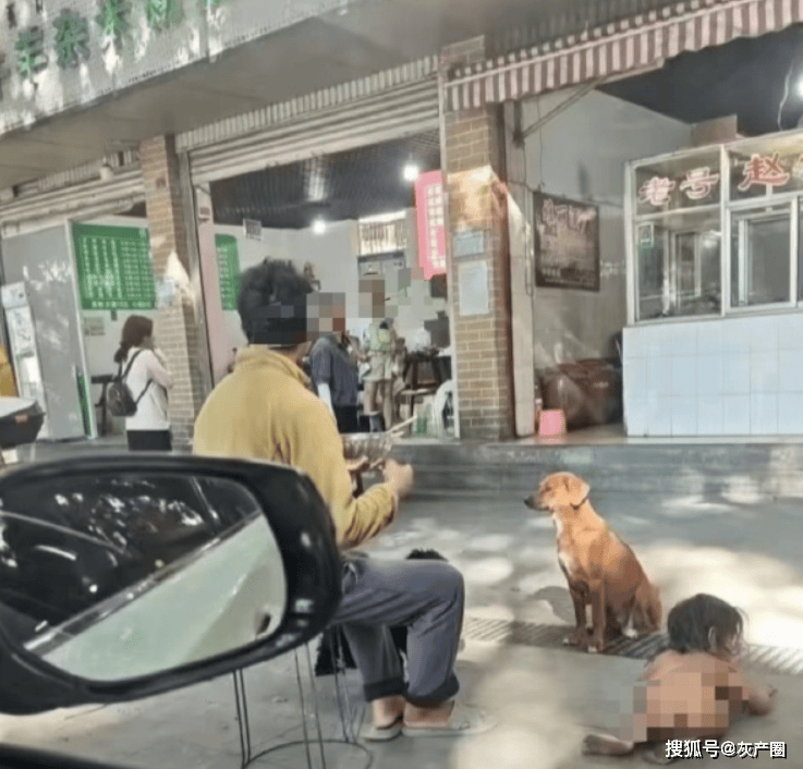 另外一些被拍的画面中,孩子的父亲就坐在一旁,正常行动,正常穿着。