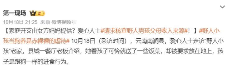 起因是有人提到自己去年冬天,也在大理附近看到过类似的小野孩,没穿衣服,在地上爬。只是当时是个小女孩,现在是小男孩。