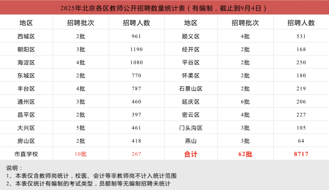 整体来看,北京教师招聘平均考录比约为 5:1,而面向非京籍应届毕业生的岗位竞争比例可达 20:1。只要符合报名条件,就应全力以赴、提前备考!