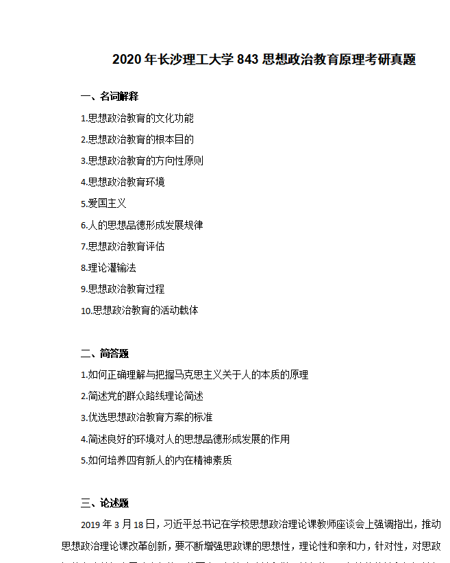 2015-2025年长沙理工大学843思想政治教育原理考研真题试卷
