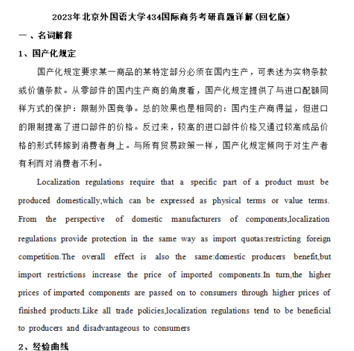 2023年北京外国语大学434国际商务专业基础考研真题试卷与参考答案【回忆版】