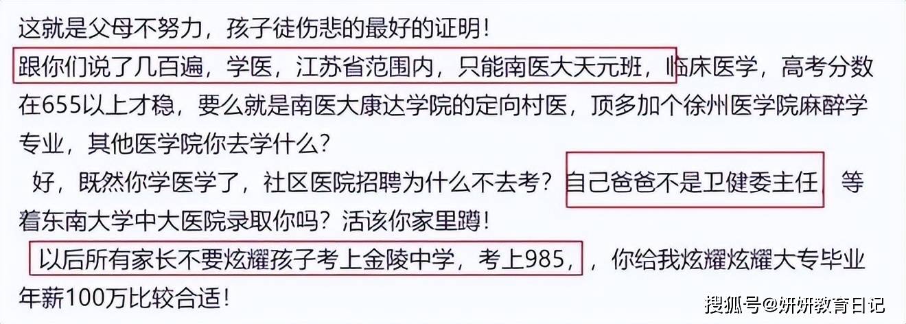 看到她报考的院校和专业后,一些懂医学领域的人立刻倒吸了一口凉气,有位专业人士更是把矛头直指她的父母,说“这就是父母没远见、不了解行业的下场”,还反问“你家长不是当官的,为啥敢让女儿在东南大学报医学院?”