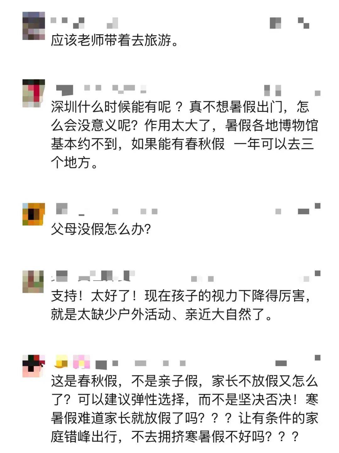 社交媒体上,有人评论说,小孩自制力较差,开学刚收心就又放假,学习状态会受影响;有网友担心,双职工家庭孩子独自放假在家,没人看管还可能沉迷电子产品;还有受访家长表示,现在升学压力很大,春秋假可能成为变相补习课。