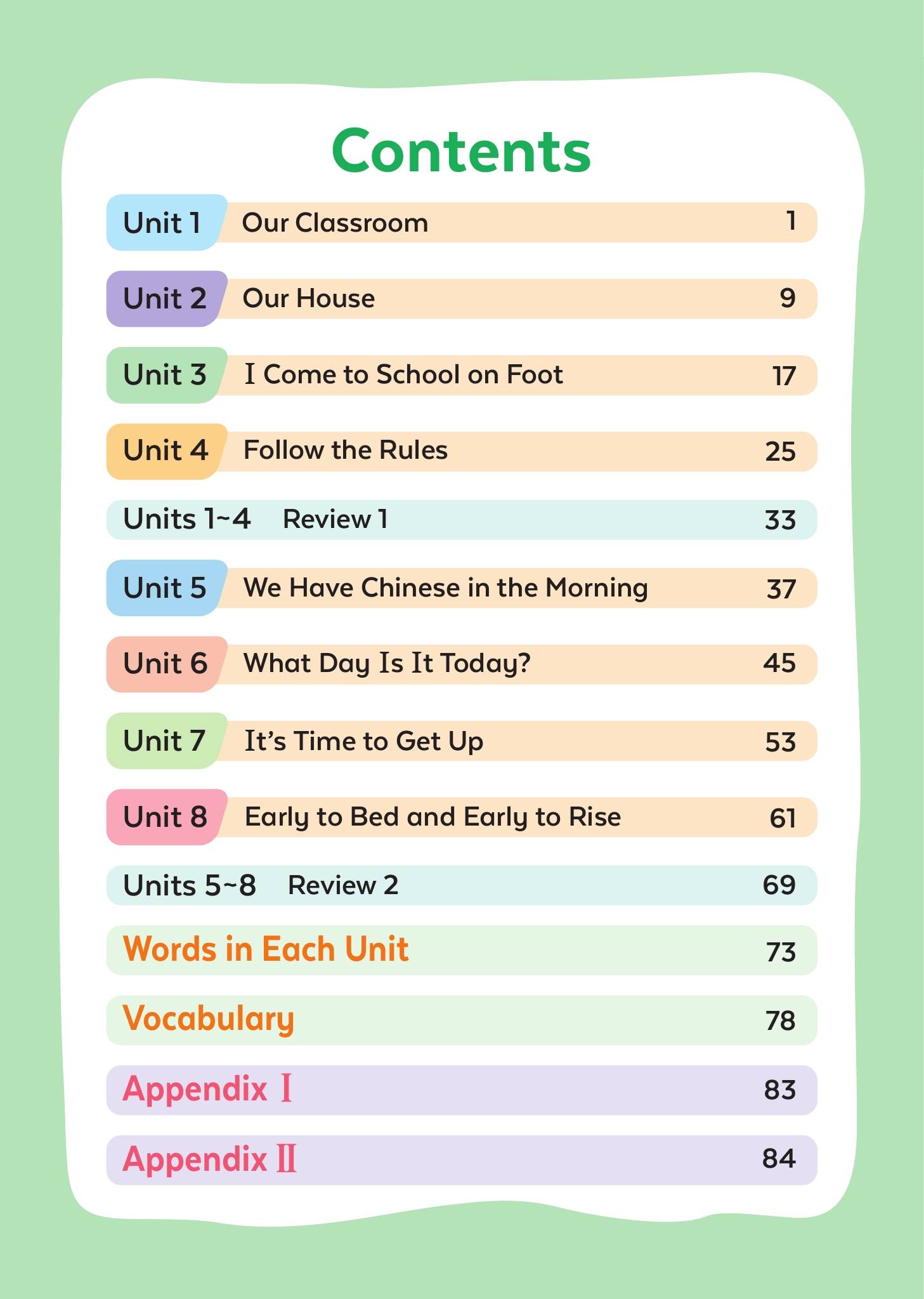 一:2024版陕旅版小学英语四年级上册电子课本教材目录: