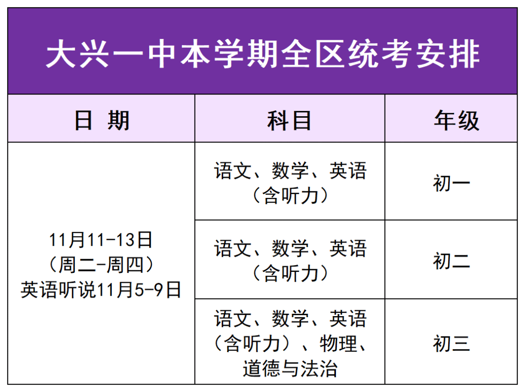 但据家长反馈,部分初中校调整为11月4日-5日考试,也有学校定在11月6日-7日,具体以学校通知为准。