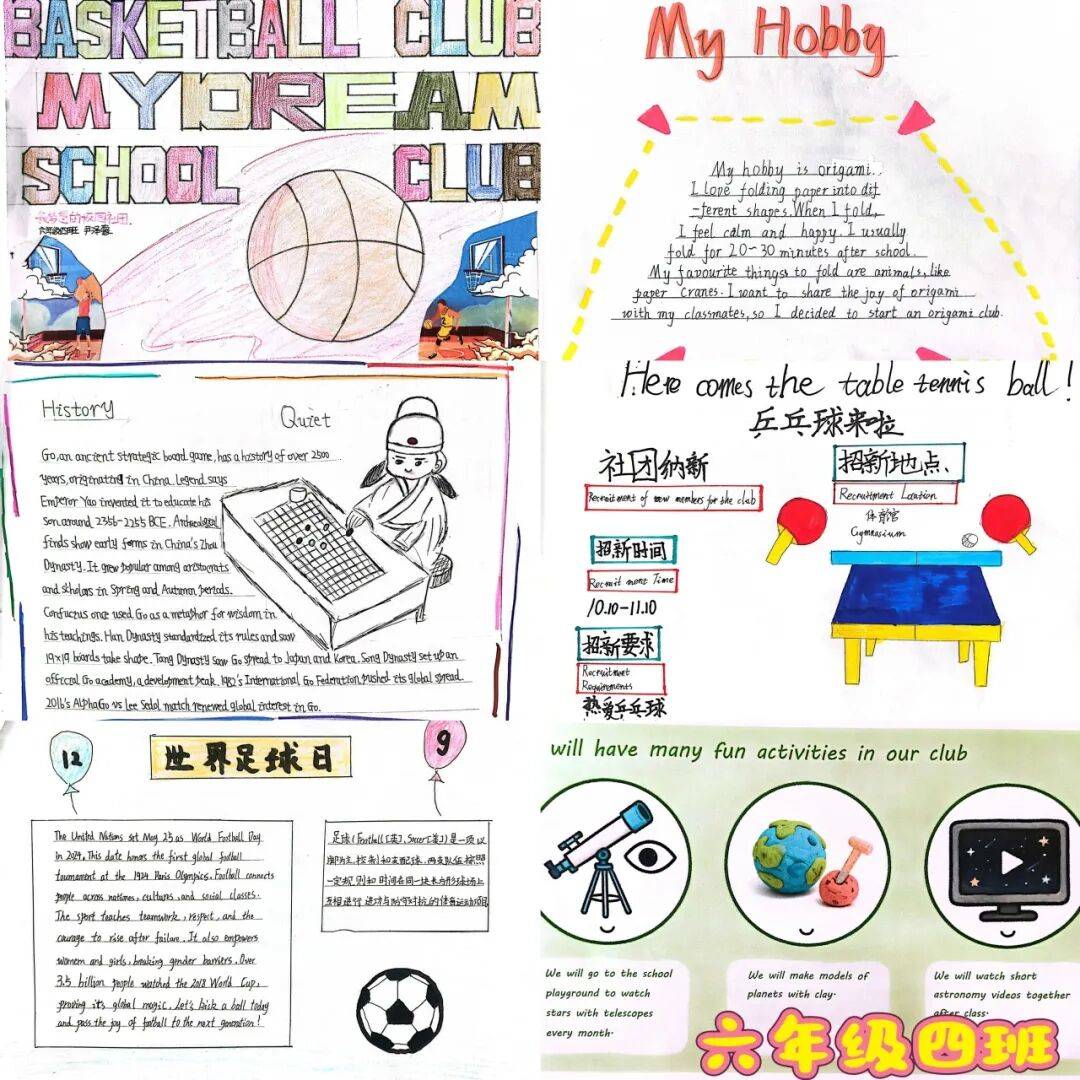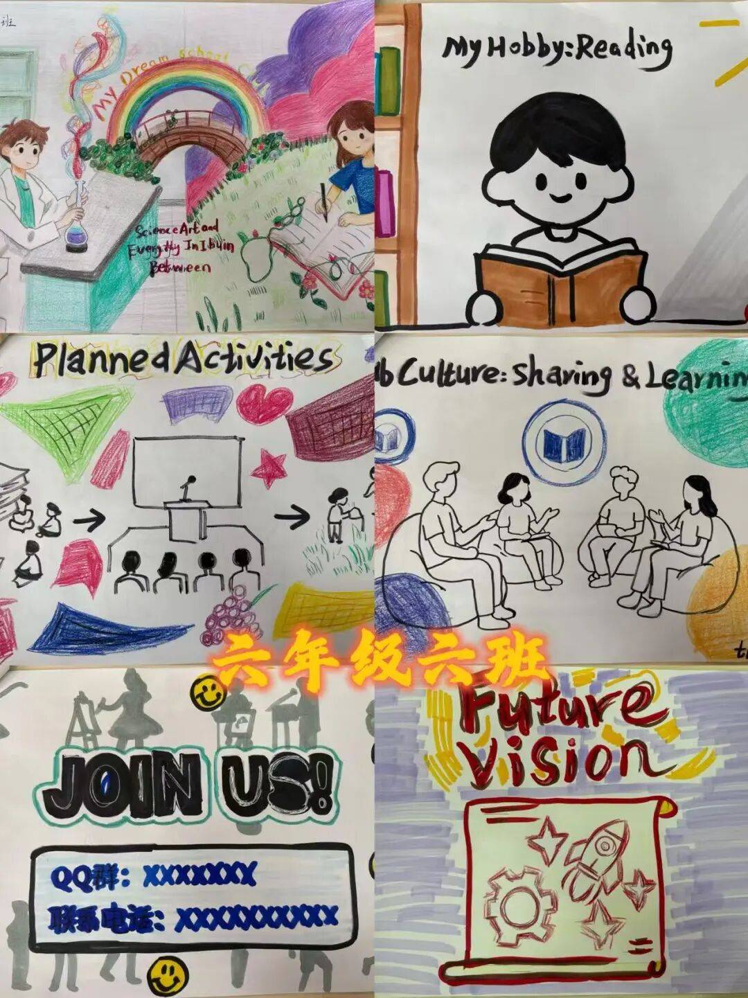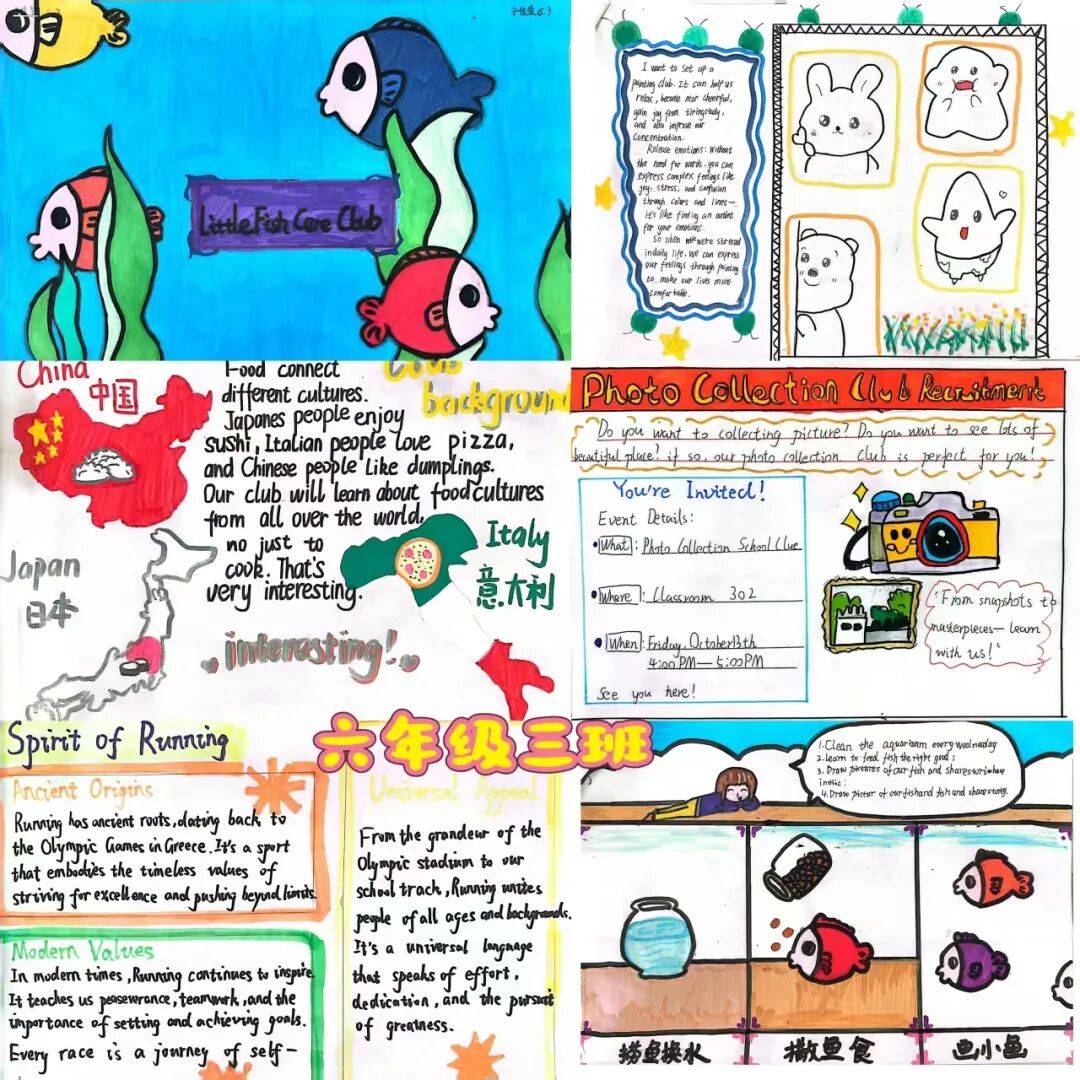 通过本次项目式学习,学生不仅巩固了英语知识,更学会用多学科视角实现创意表达,以创新形式落实新课标要求,推动英语学科语言能力、思维品质、文化意识与学生学习能力在实践中协同发展,为素养导向的英语教学注入鲜活活力,也为校园文化增添了一抹充满少年创意的亮色。让我们一起来欣赏六年级各班的优秀作品吧!