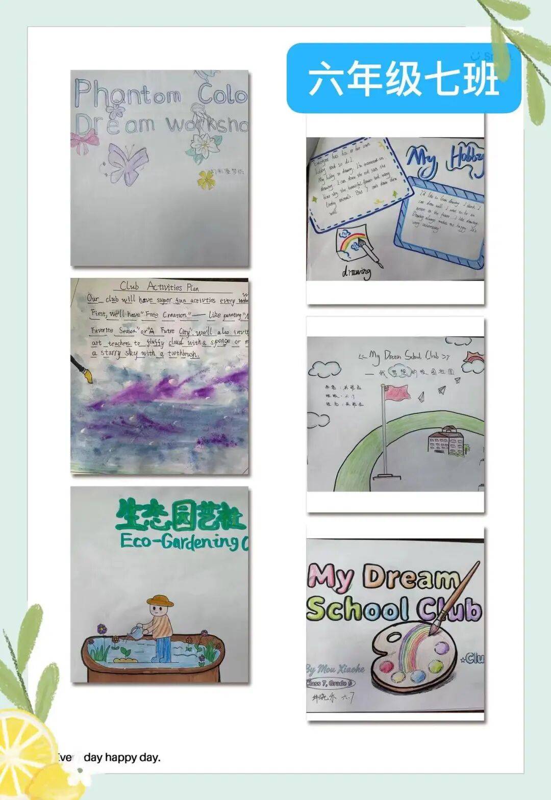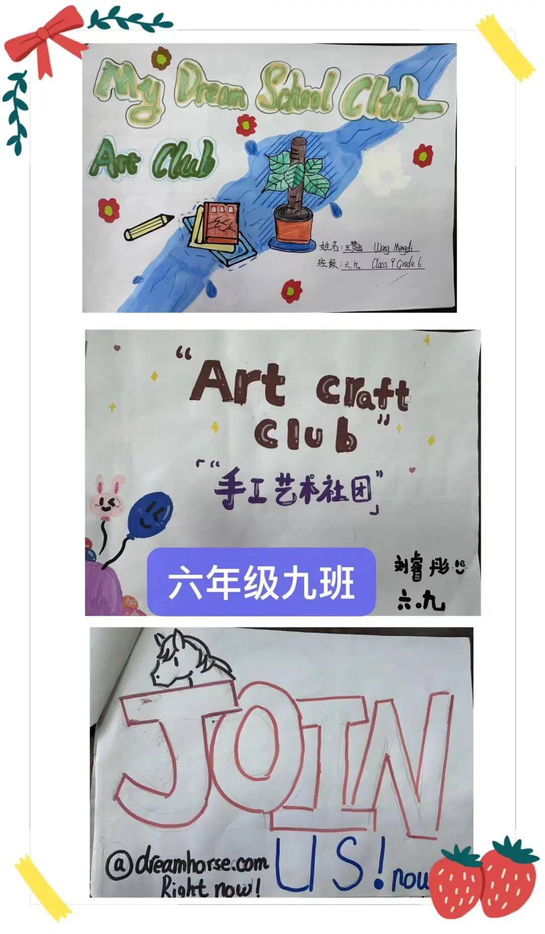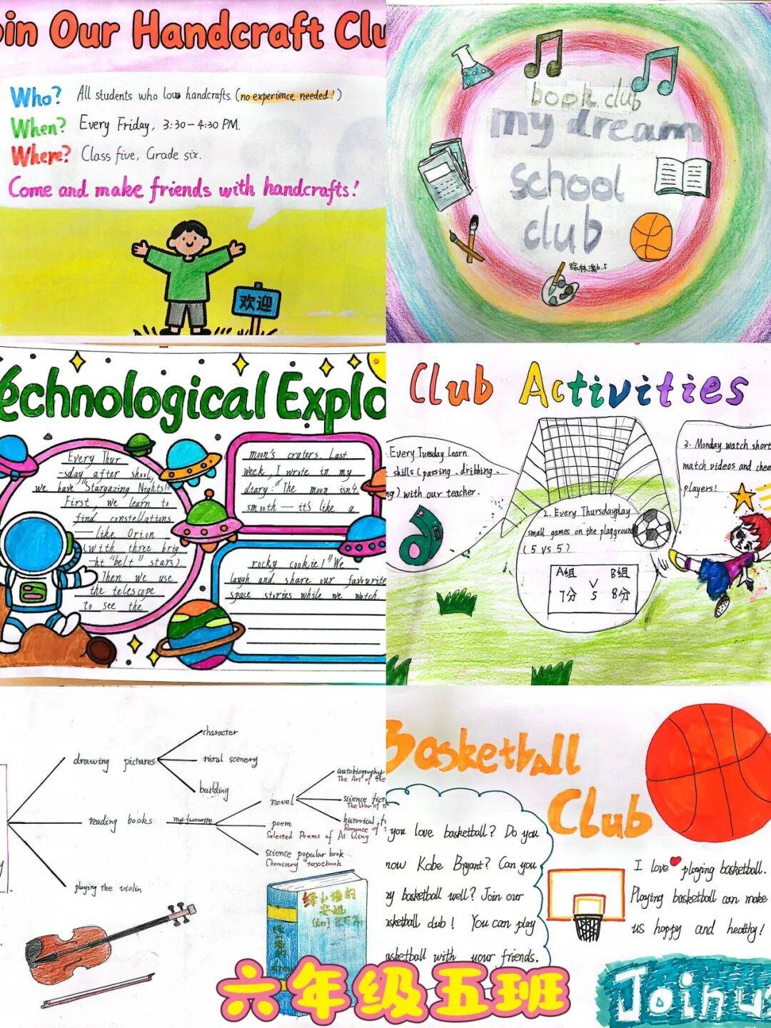 通过本次项目式学习,学生不仅巩固了英语知识,更学会用多学科视角实现创意表达,以创新形式落实新课标要求,推动英语学科语言能力、思维品质、文化意识与学生学习能力在实践中协同发展,为素养导向的英语教学注入鲜活活力,也为校园文化增添了一抹充满少年创意的亮色。让我们一起来欣赏六年级各班的优秀作品吧!