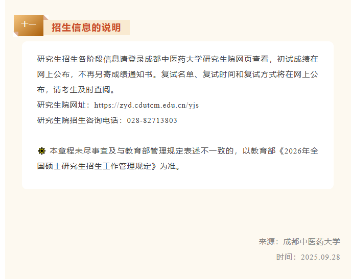 必看!2026年成都中医药大学硕士统招研究生招生章程及专业目录