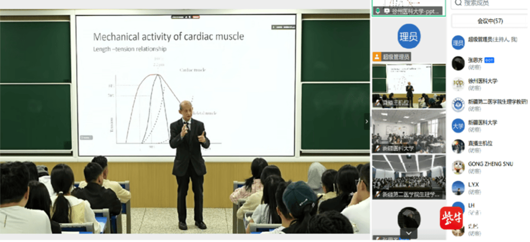本次活动邀请到江苏省外国专家工作室专家、英国萨里大学吴常皓教授作为主讲教师。吴教授以其深厚的学术造诣和丰富的国际教学经验,围绕生理学领域的核心知识与前沿进展进行了系统梳理与生动讲解。课程内容既立足基础,又放眼国际生理学前沿动态。课堂上,吴教授深入浅出的讲授方式、生动的案例剖析以及与前沿研究的紧密结合,深深吸引了线上线下聆听的师生,极大拓宽了其学术视野。课程结束后,多校师生围绕课程内容、科研思路以及未来发展规划等,与吴常皓教授进行了热烈讨论,现场及线上互动气氛活跃,大家共同期待未来能有更多机会参与到此类高水平的国际化教学交流活动中。