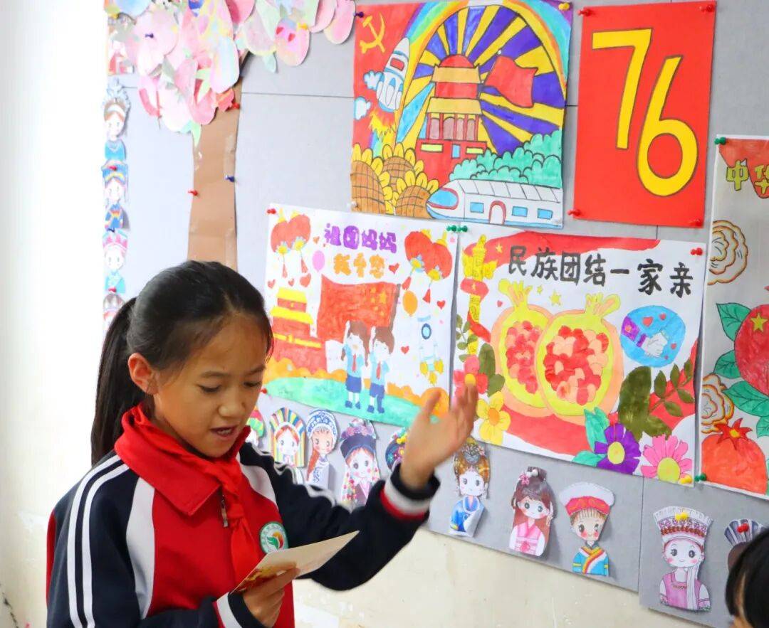 民族团结进步板块里,各班级化身“民族文化交融的小舞台”:教室角落的民族特色挂饰鲜活亮眼,墙面张贴的民族团结故事引人驻足,展板上的主题活动图片定格温暖瞬间,浓郁的民族交融氛围扑面而来。