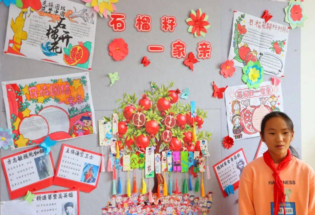 石榴文化展示里,各班展现形式多样、内容丰富,将石榴文化的“团结、坚韧、感恩”内涵融入班级建设,为班级文化注入独特活力,让学生在潜移默化中感悟精神力量。
