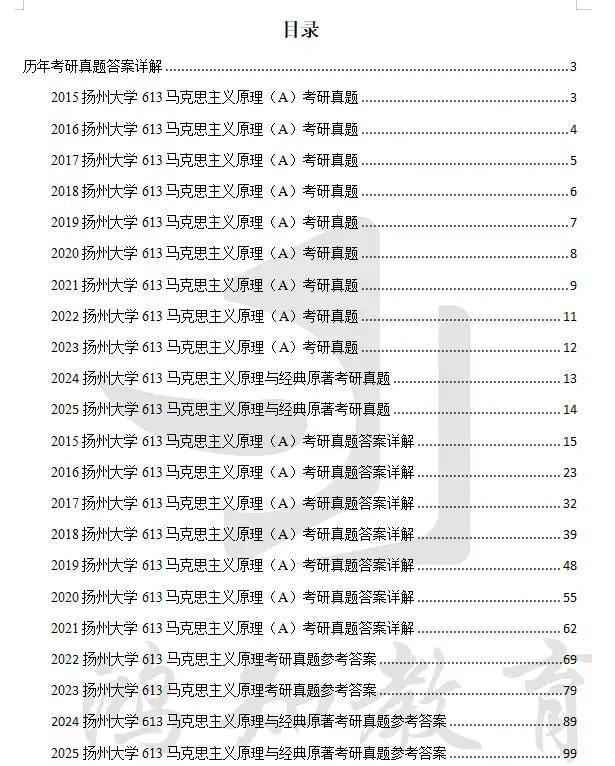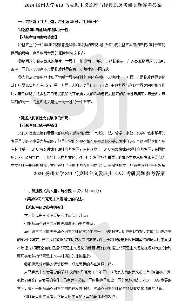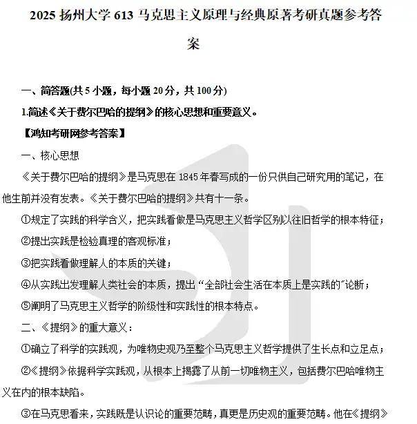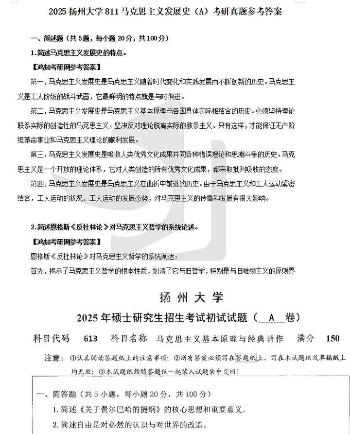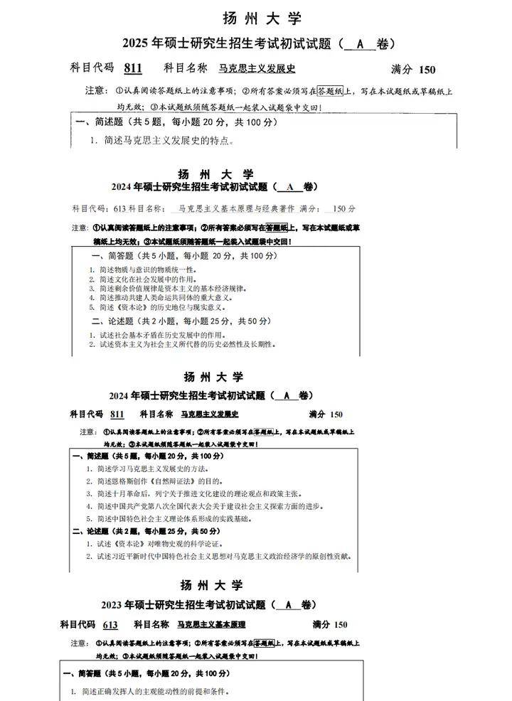 2007-2025年扬州大学613马克思主义基本原理与经典著作考研真题试卷(不含09)
