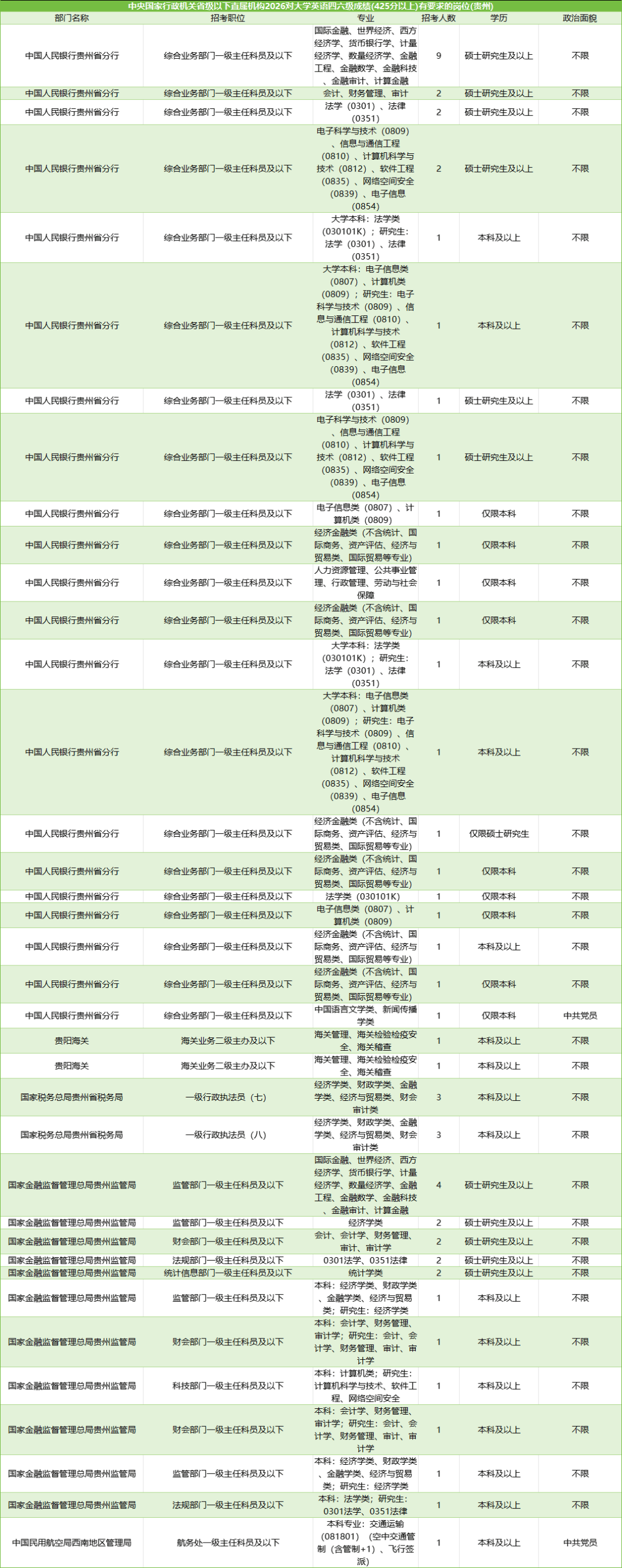 由于该部分对四六级要求的岗位数量较多,篇幅有限,无法一一展示,下图以部分省市为例供大家参考。