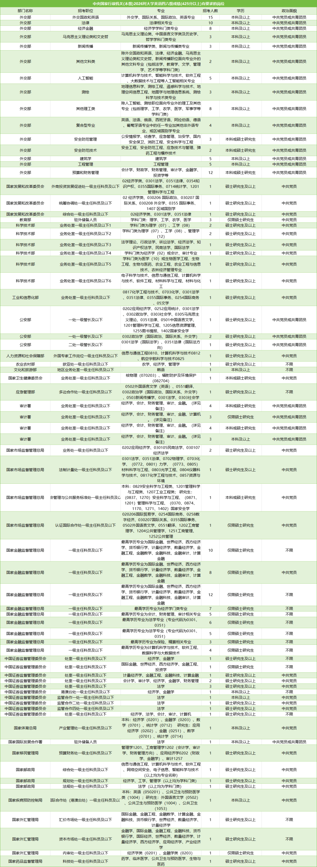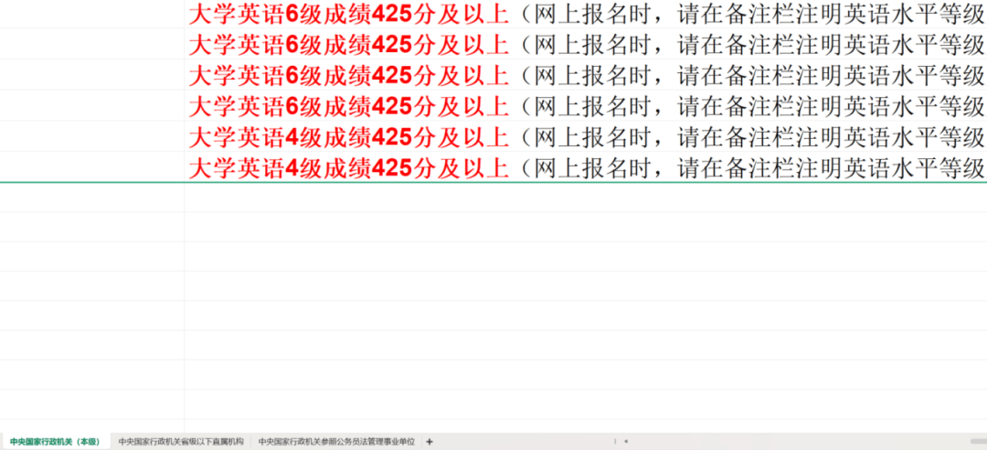 以2026国考中的中央国家行政机关(本级)为例,不少岗位都要求四六级须达到425分以上,并在网上报名时需要注明英语水平等级及分数。