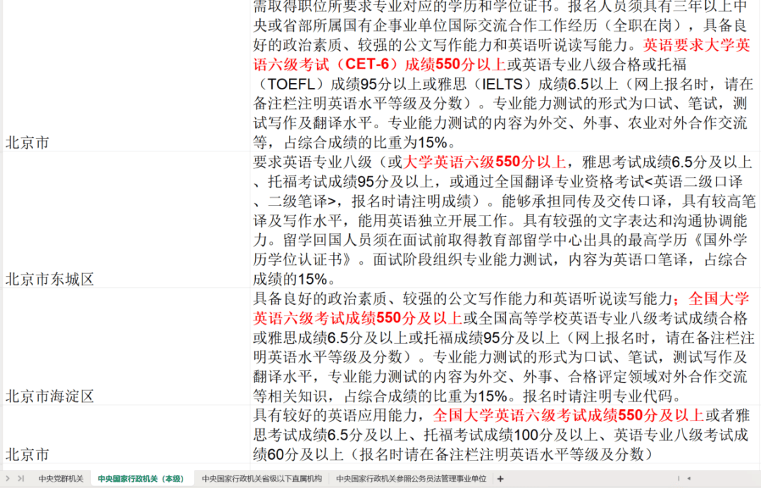 有的岗位甚至要求六级分数在550分以上。