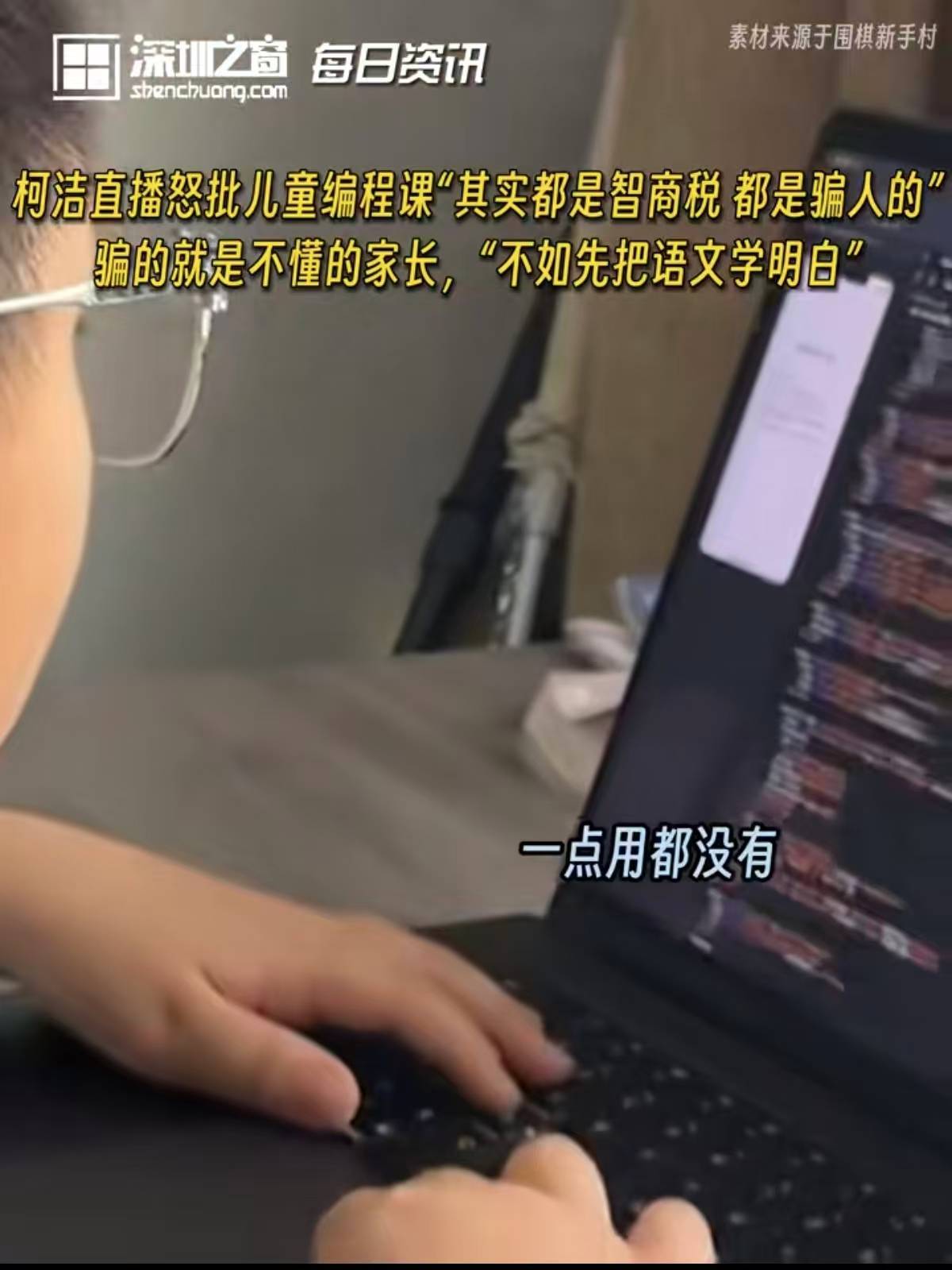 ▲“柯洁说儿童编程课是智商税”引发网友关注。图/深圳之窗视频截图