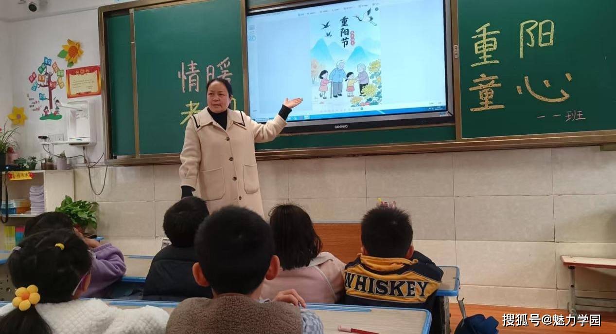 各班班主任结合低年级学生的认知特点,通过生动的动画短片、经典的孝心故事、趣味的童谣传唱等形式,直观地向孩子们讲解重阳节的起源、习俗以及尊老敬老的传统内涵。在“孝心分享会”环节,孩子们踊跃举手,有的讲述自己帮爷爷奶奶捶背、端茶的日常小事,有的分享与长辈相处的温暖瞬间,稚嫩的话语中满是真诚,让课堂洋溢着爱的氛围。